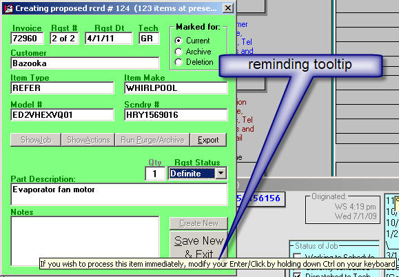 Quite simply, if you want to link directly from the creation of the request itself -- to processing of the request -- simply hold down your Ctrl key while completing the request (in other words, while clicking on its "Save" button). On the basis of this variation, the system will take you right to the same item, as loaded into the PartsProcess form, for appropriate further processing.