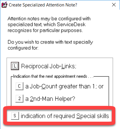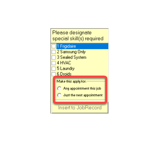 Like other specific note types, when an appointment is set up from a JobRecord of this new type, the system will automatically add the necessary skills. It will also delete the note if needed, and so on.