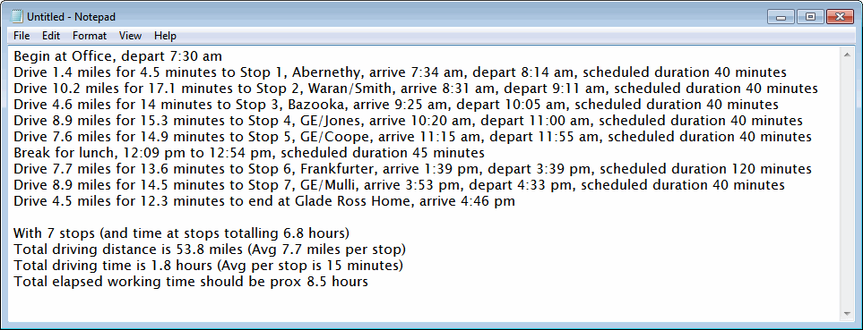 This optimizer has a key advantage - it smartly considers the tech's job timings (it can intelligently account for one or more of a tech's jobs already having a time or time-frame assigned), lunch break, and time required at each stop. It gives good predictions about the tech's day.