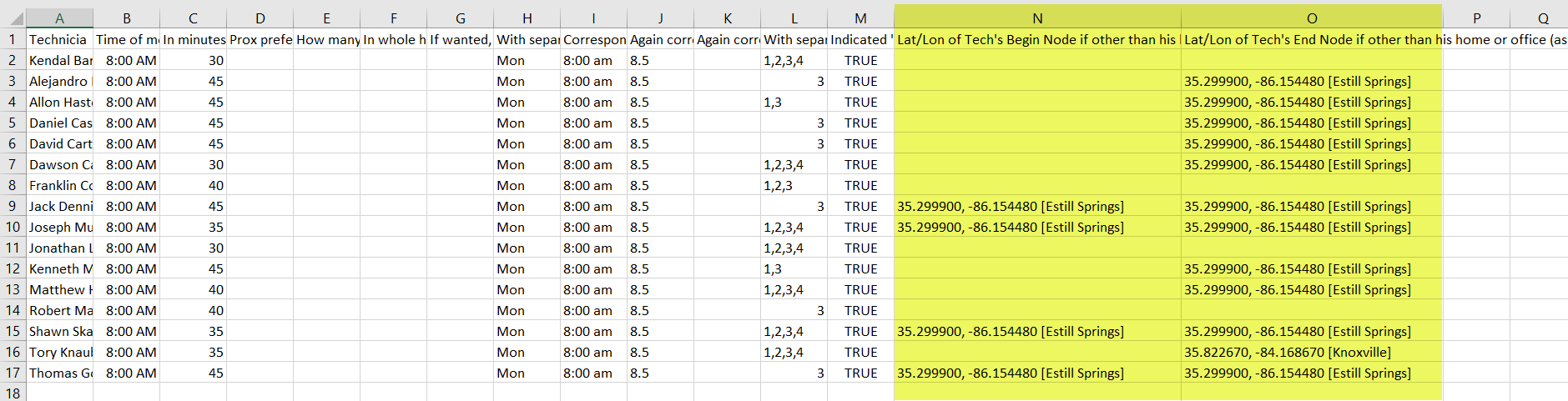 Unlike MapPoint and Google, which accept addresses, GraphHopper requires latitude and longitude information. So, you need to provide this information for each technician's home address and your office. This is quite simple.