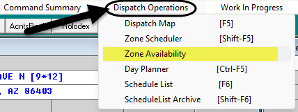 The Zone Availability Calendar is found by navigating to the Dispatch Operations menu and selecting Zone Availability.